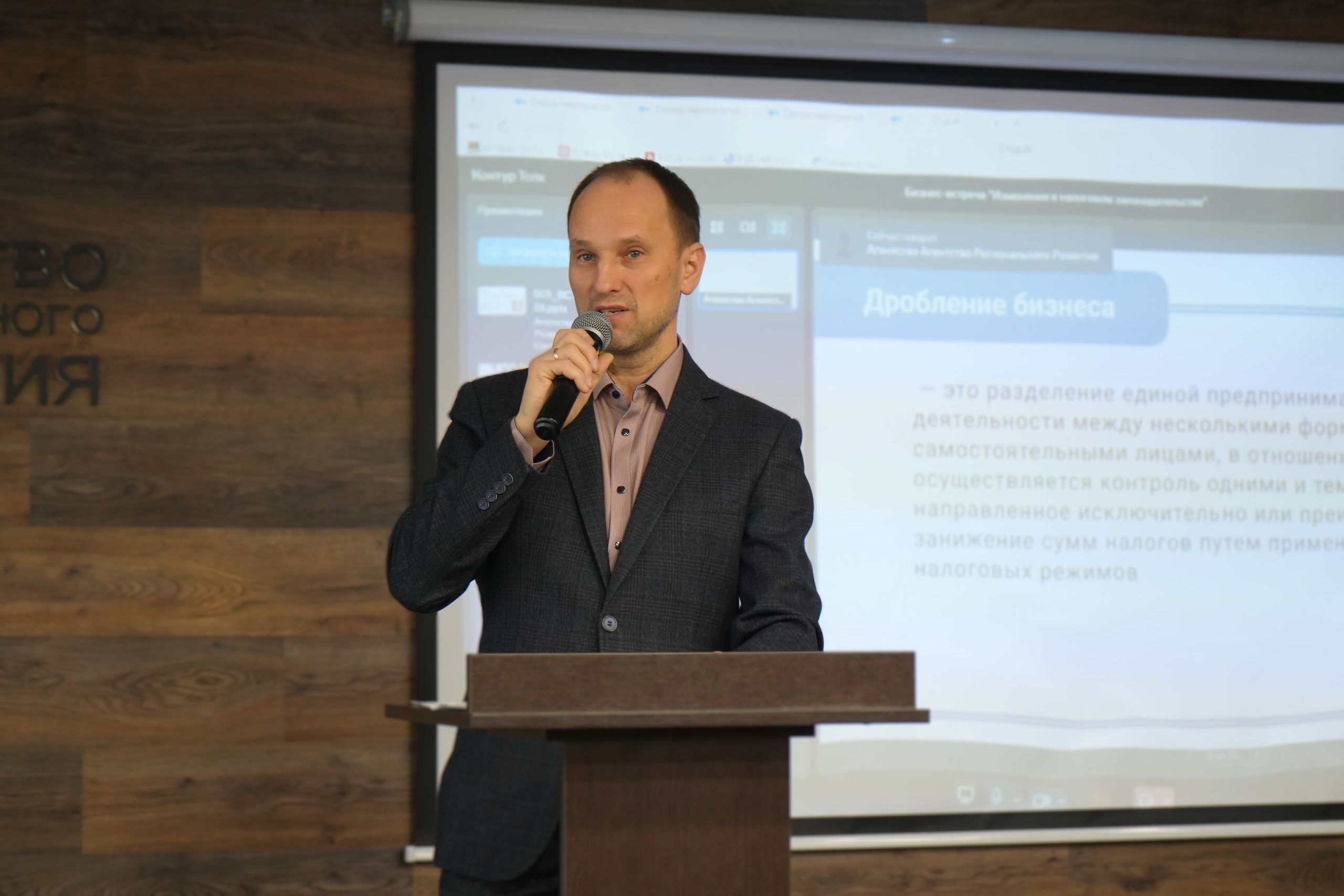 Одним из центральных вопросов мероприятия стала тема дробления бизнеса. Участники встречи обсудили, как структурирование деятельности преимущественно для получения налоговой выгоды может привлечь внимание контролирующих органов. Представитель ООО «Стратег» Максим Тропичев разъяснил предпринимателям условия налоговой амнистии для тех, кто добровольно откажется от сомнительных схем. Эксперт порекомендовали вести раздельный учет и избегать формального разделения бизнеса.